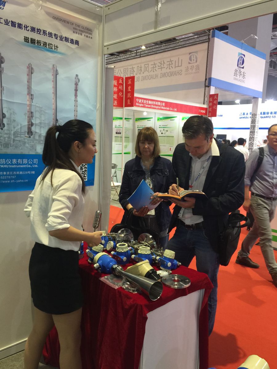 上海雅鵠儀表有限公司受邀參加了本次展會。此次展會主要集中展示了我司在流量、液位、壓力、控制系統等方面的研究成果。流量計、液位變送器、浮球液位計、磁翻板液位計等系列的精美產品吸引了大批國內外客戶前來參觀。許多參加展會的客商也對雅鵠公司展出的產品產生了極大的興趣。很多客戶都現場進行了詳細的咨詢、報價、還有客戶當場簽訂采購合同。尤其是我司大口徑電磁流量計得到國內外客戶認可。